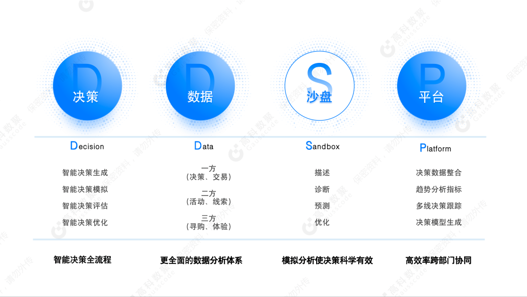 1066vip威尼斯(中国)智慧决策平台DDSP(Decision  Data Sandbox  Platform)从销售、市场、服务,以及智能制造等重要应用场景出发,从传统的专家决策方式向基于数据驱动的数智化决策进行全面升级。